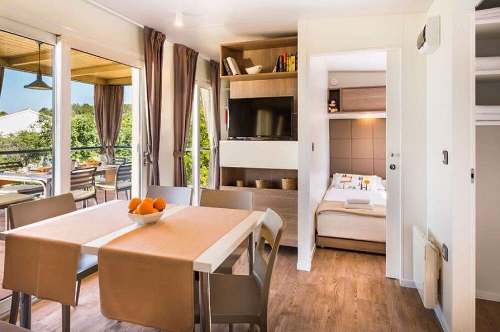 Krk home za 6+1, s površino 38 m², ležijo v naravnem okolju mediteranskega rastlinja, v bližini otroškega bazena in otroškega igrišča. V treh spalnicah lahko sprejmejo šest oseb, imajo prostorno in dobro opremljeno kuhinjo ( mikrovalovna pečica, električni štedilnik) z dodatnim ležiščem, s SAT TV-jem in z dvema kopalnicama. Krk home za 6+1 so klimatizirane, imajo tudi prostorno in pokrito teraso.